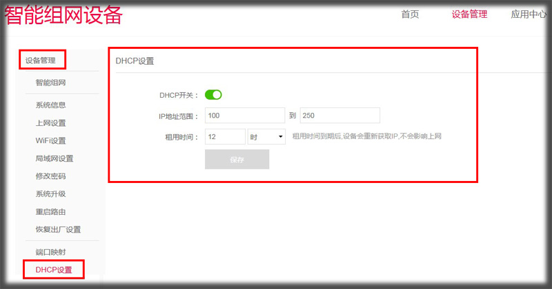 蒲公英路由器在路由器管理界面,点击【设备管理】——【DHCP服务设置】,