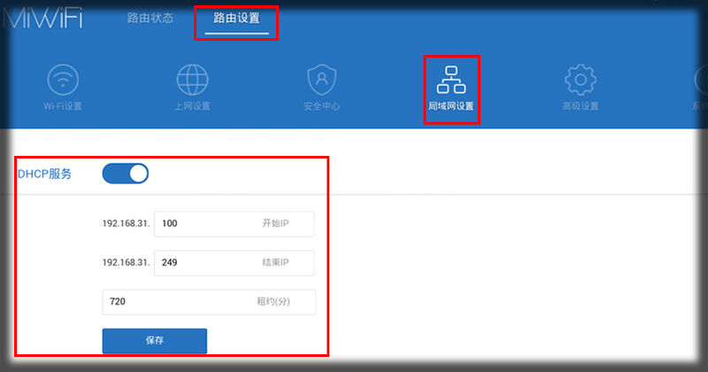 在路由器的管理界面,点击【路由设置】——【局域网设置】,