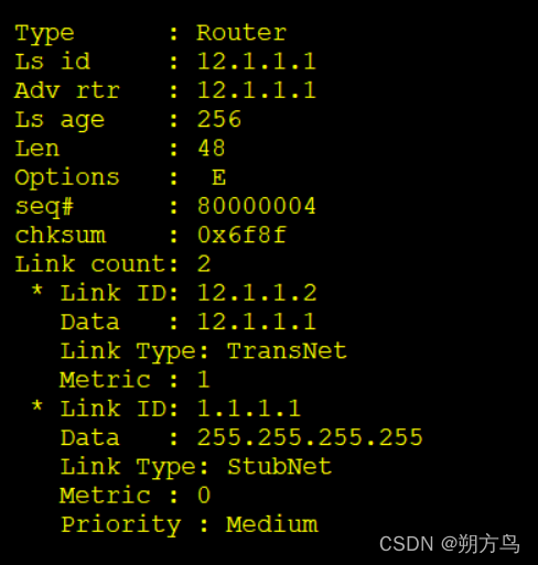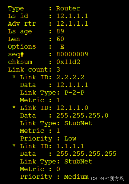 为了便于读懂之后的LSA信息,首先对四种链路类型的Link ID和Link Data值说明如下:
