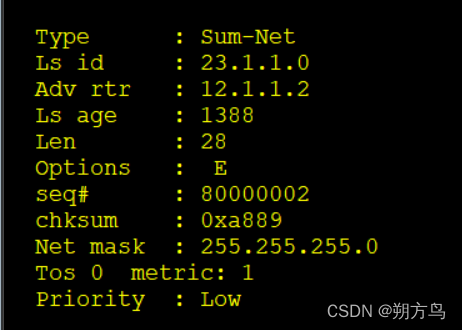 三类LSA正是由区域边界路由器发出的,三类LSA只有路由信息,没有拓扑信息,用于描述域间路由。注意,一个网段生成一条LSA,发给相邻的区域的路由器。其通告范围是区域间。