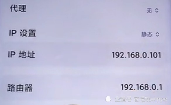第三步:此时你会看到【IP设置】,点击将其修改为【静态】,接着你会看到路由器选项后的数字,将其复制;