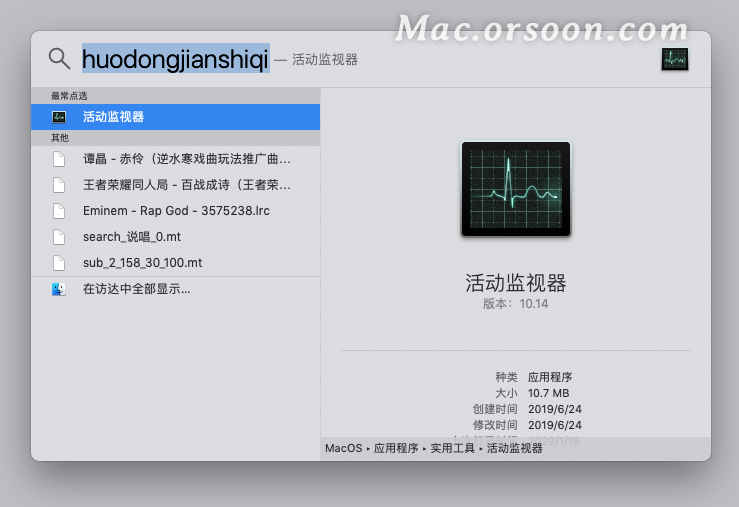 然后输入「 huodongjianshiqi」 然后按回车键打开活动监视器。
