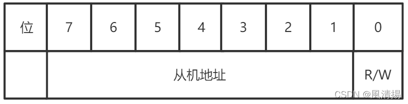 D7~D1 位组成从机的地址。D0 位是数据传送方向位,为“ 0”时表示主机向从机写数据,为“1”时表示主机由从机读数据。