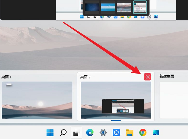 3、当要关闭这个新建桌面时只需要用同样的方法,然后点击桌面缩略图上的关闭按钮即可。