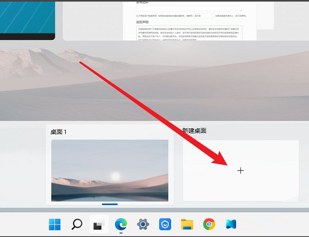 2、然后点击弹出的新建桌面按钮,即可增加一个新的桌面。