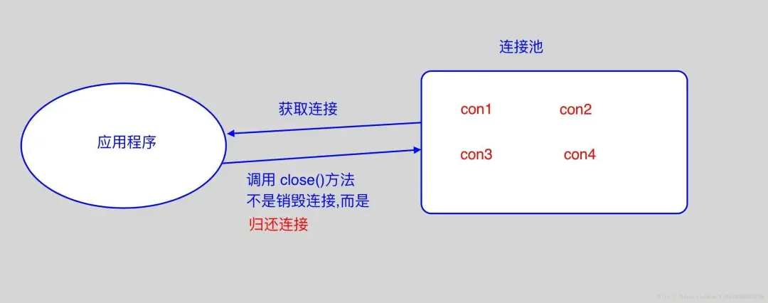 连接池咱们平时使用最多、面试最多的是其中控制伸缩性的参数:最小连接数、最大连接数。最小连接数主要是要限定池的大小,最大连接数主要是限定能打开的最大连接数。使用连接池进行通信的流程如下图所示:
