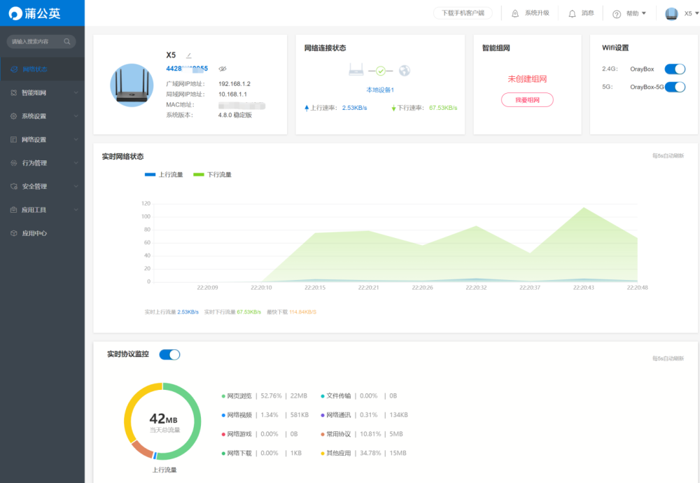 随着家里智能设备的增多,家里的网速越来越慢了,前段时间,玩游戏时坑了几次队友之后,决定要换一台路由器。现在家人的手机都是支持WiFi6的,选择路由器的时候,也就额外关注WiFi6新品,挑来挑去,最后买了带机量比较大的蒲公英X5 企业级WiFi6路由器。