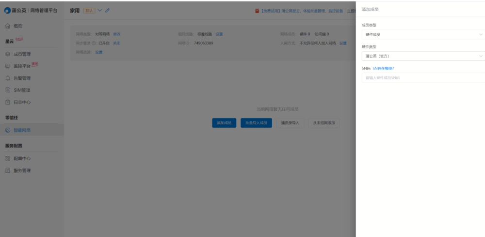 添加硬件成员和软件成员,硬件成员就是路由器本身,添加机身的sn码就能绑定,软件成员是系统生成的ID,添加之后,就实现了智能组网了,非常的方便快捷。