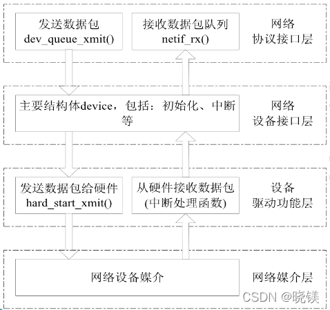 给上层协议提供统一的数据包收发接口,无论上层是ARP协议还是IP协议,都通过dev_queue_xmit函数发送数据,对数据包的接收通过netif_rx函数实现,函数原型: