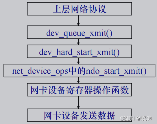 void netif_start_queue(struct net_device *dev):告诉上层可以调用dev_hard_start_xmit进行数据发送。