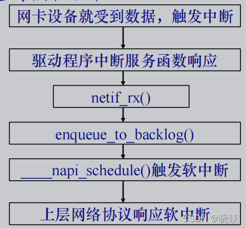 接收:当网络设备从媒介收到数据包后,它必须将数据转换为sk_buff数据结构并传递给上层,各层剥去相应的协议头直至交给用户。