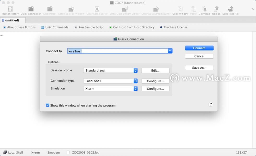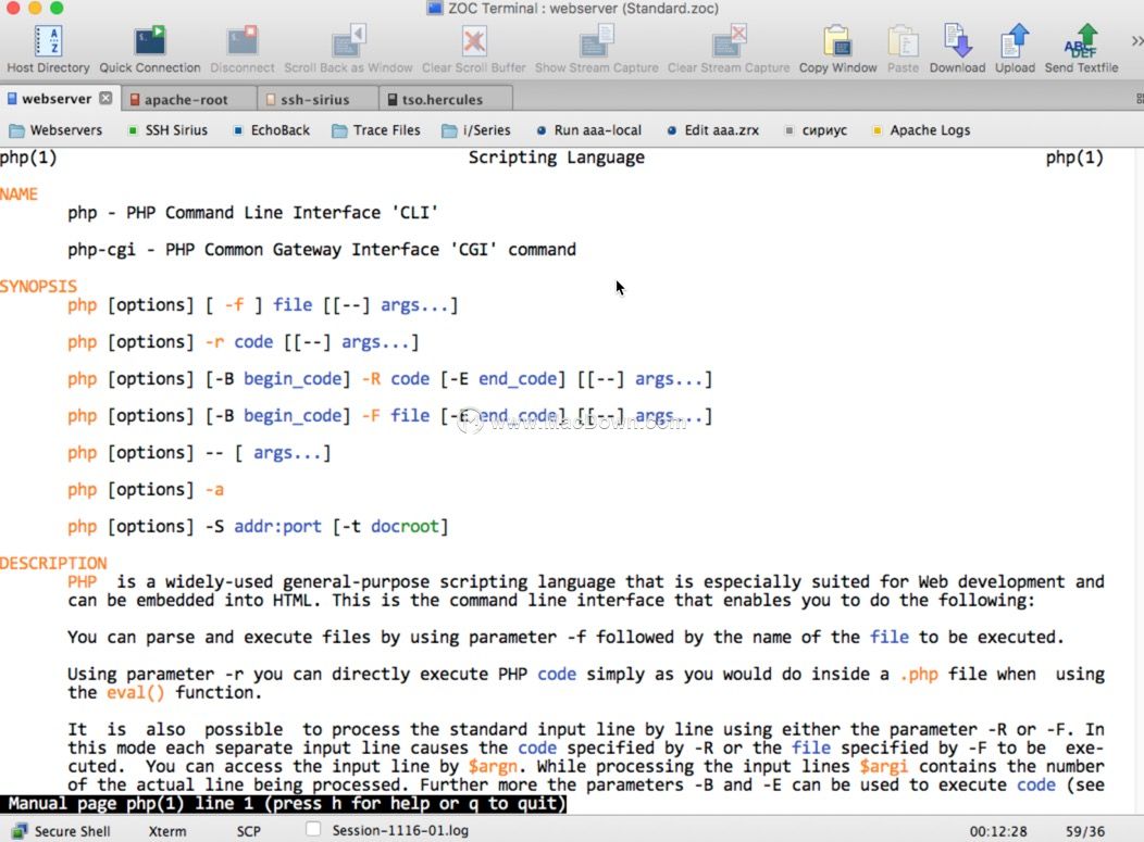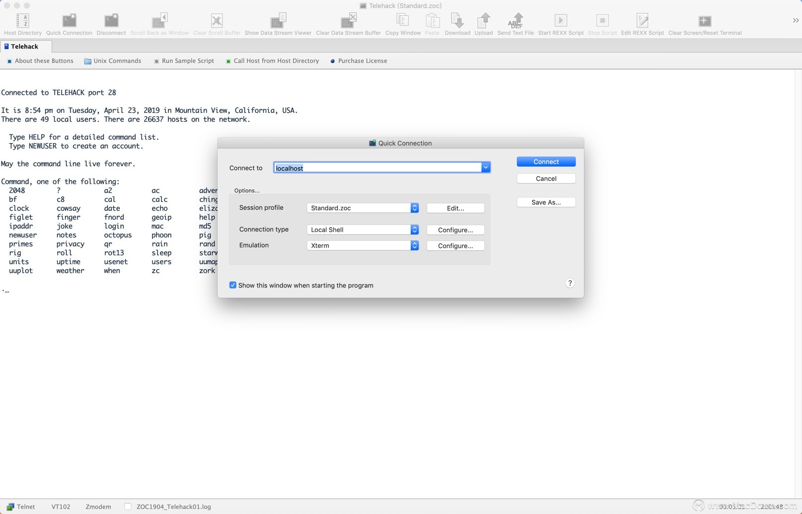 ZOC Mac版 是一个专业,现代和成熟的 终端仿真器 和telnet客户端,主要目的是让您使用安全外壳(SSH), telnet(rfc854),RS232 /串行和许多其他通信方式访问基于字符的主机 。它可用于连接Unix / Linux主机和shell帐户,BBS,IBM大型机(通过 TN3270或 TN5250),Internet泥浆或连接到计算机串行端口的设备。