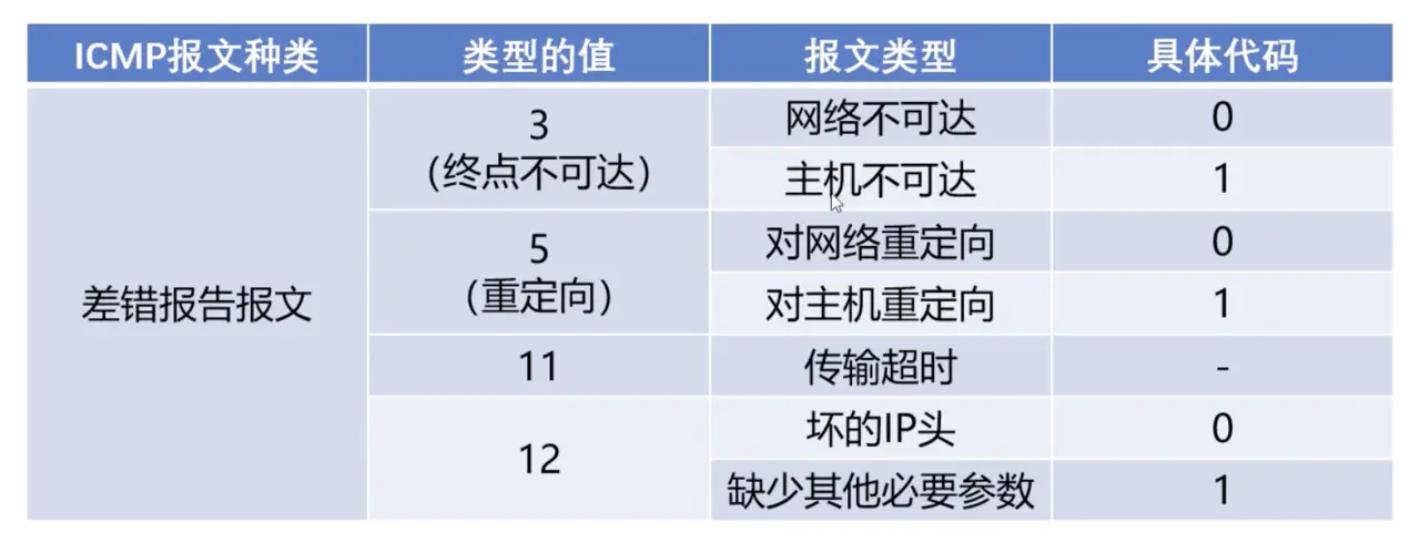 差错报告报文具体分为「七种类型」,而「大部分的报文类型是由类型的值和具体代码组成的」。具体如下图所示: