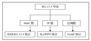 依托 IPv6 协议 构建的物联网主要由以下两个部分组成:一部分是节点,另一部分是网关,其中节点部分具体负责采集信号、控制执行机构,与网关进行无线通信。按照无线通信方式,可将节点分为三种类型,分别为蓝牙节点、Wifi 节点和 802.15.4 节点。在这三种类型的节点中,802.15.4 节点在不同层上采用的协议均不相同。