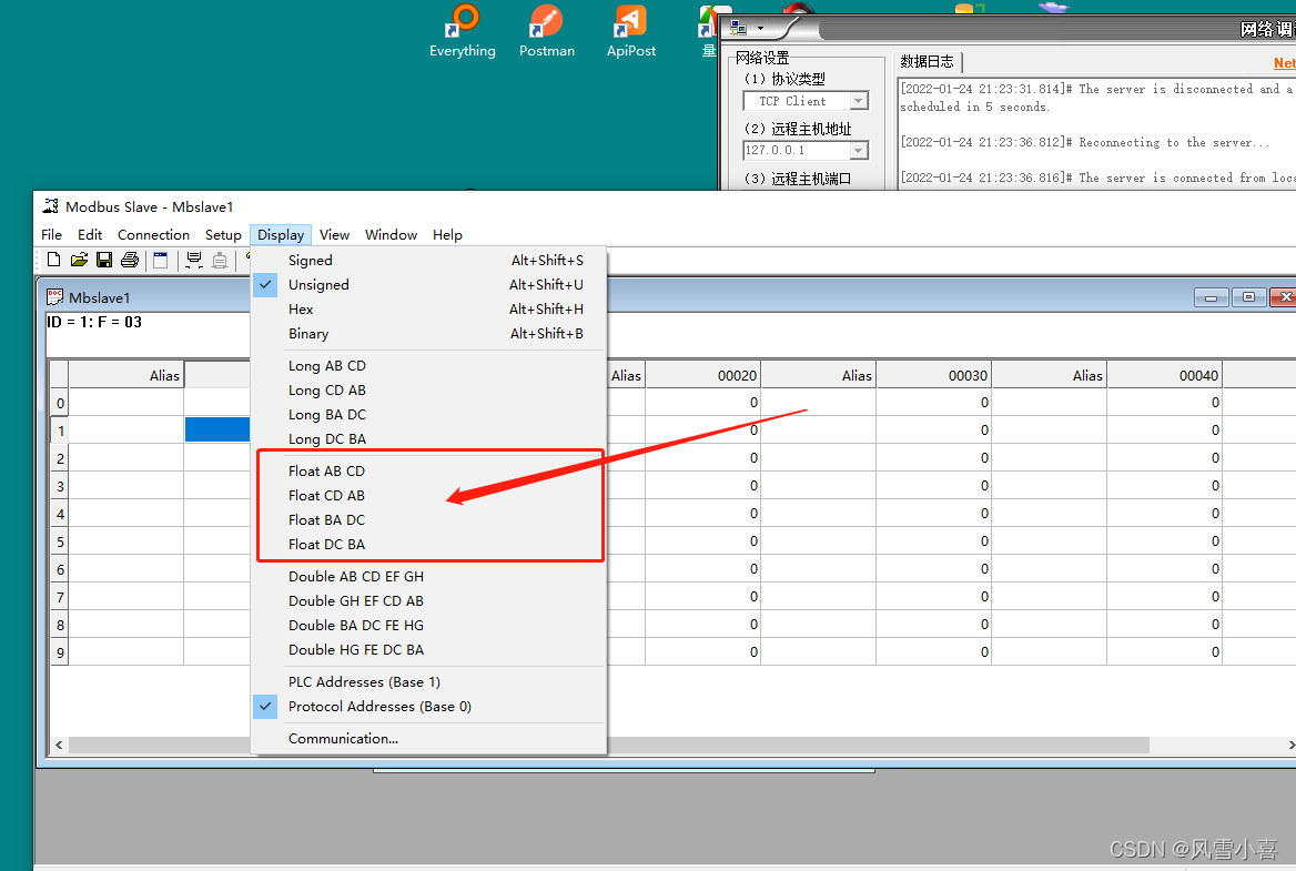 一开始我并没有意识到0x01功能号中数据长度的意义,事实上,数据长度如果超过当前地址的值,会往后延伸到后面的地址。寄存器也同理,如上述的一个值占用两个地址等。