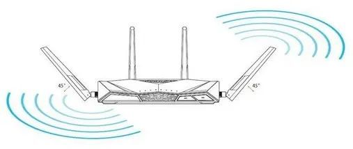 摆放好路由器后,接下来就是调整天线的方向了。大家可以尝试45°、90°等角度调节,找到合适的即可~