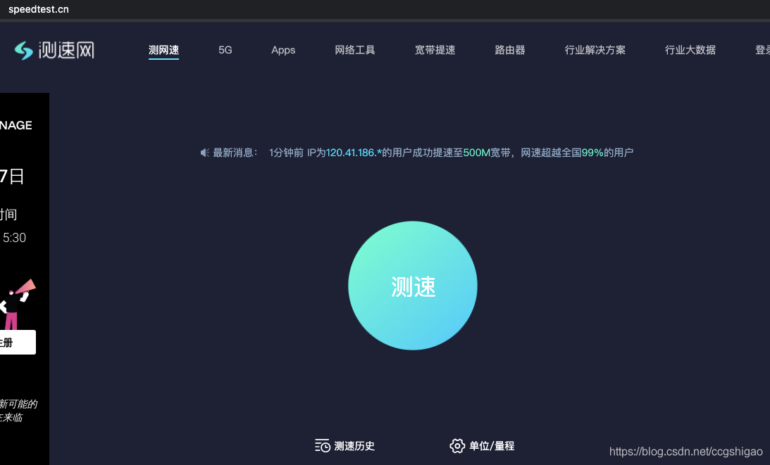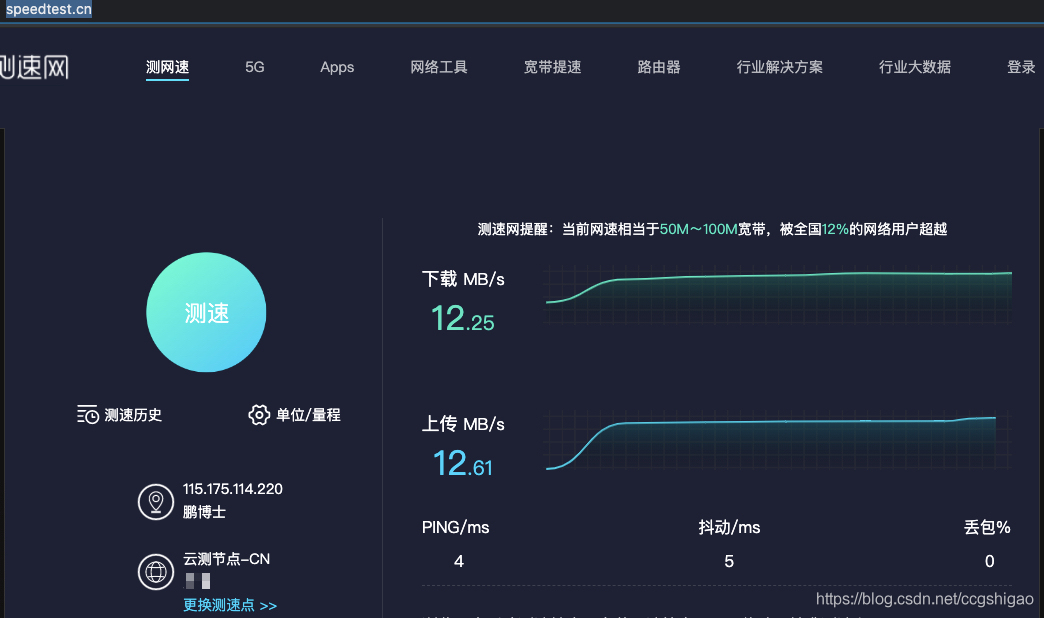 1) 浏览器输入: https://www.speedtest.cn/ ,点击 “测速”进行测试