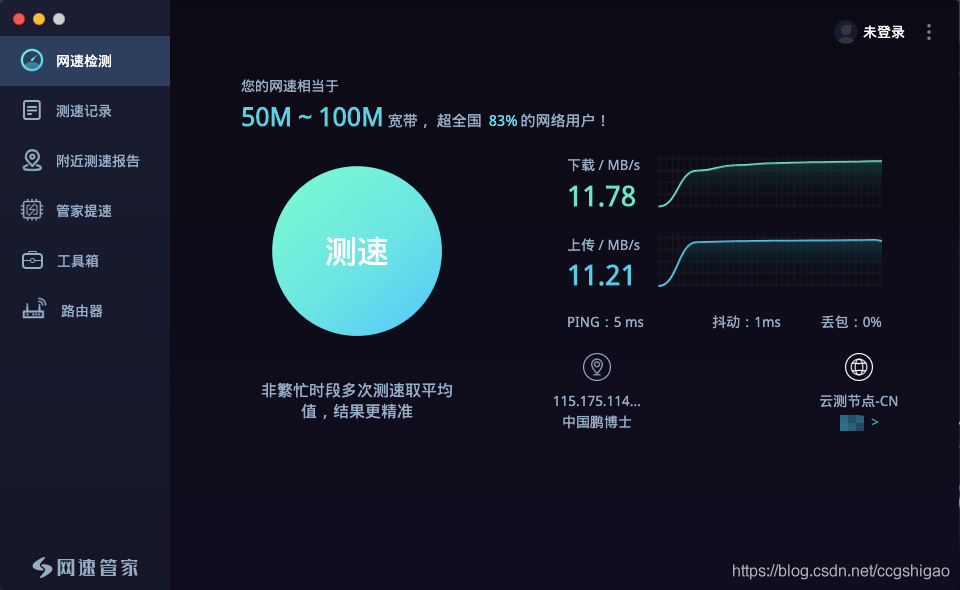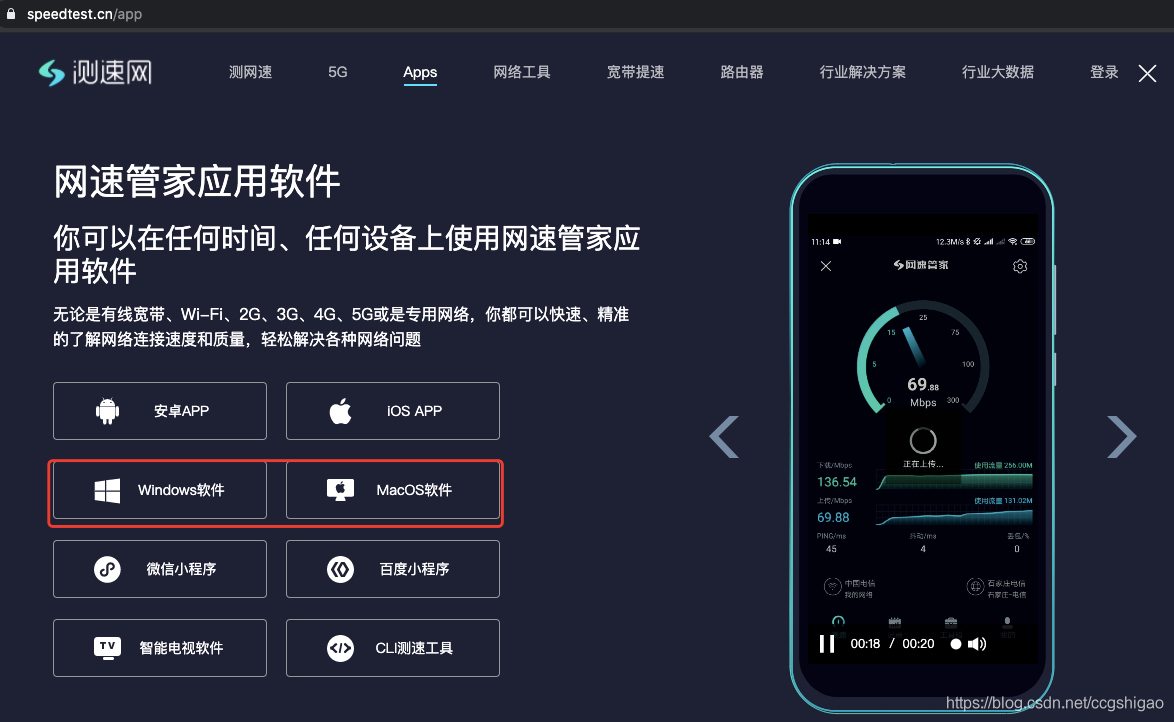 下载对应系统的客户端,这里我选择MacOS软件,你可以根据自己的情况下载对应的APP,后续测速的操作方式基本都一样。