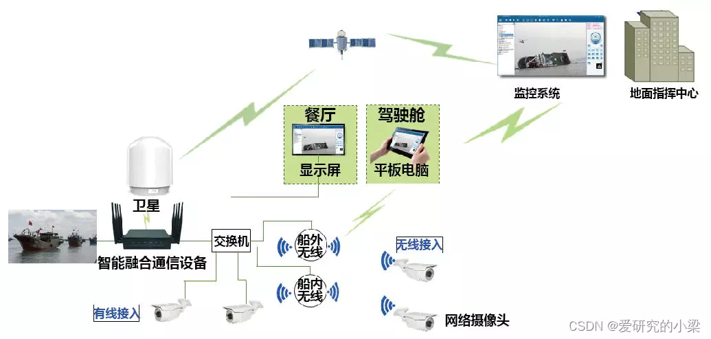 2.视频监控:通过船内和船外的多个摄像头,对船内的情况及船外的环境实时监控,支持夜视功能、动态画面告警。