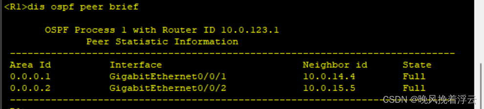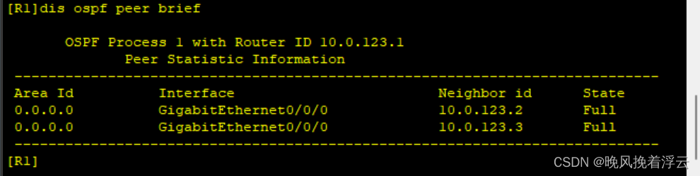 我们配置完成后,查看R1的OSPF邻居建立情况: