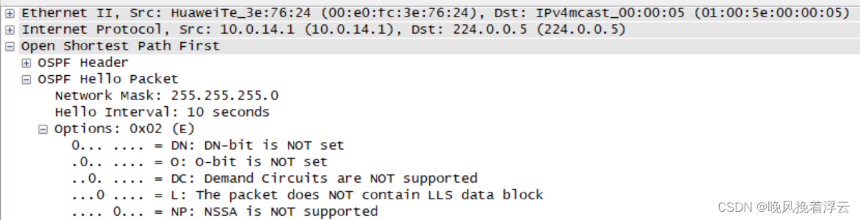 下面我们来分析一下R1和R4相互发送的Hello报文:
