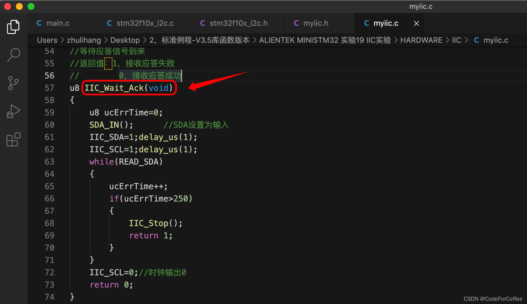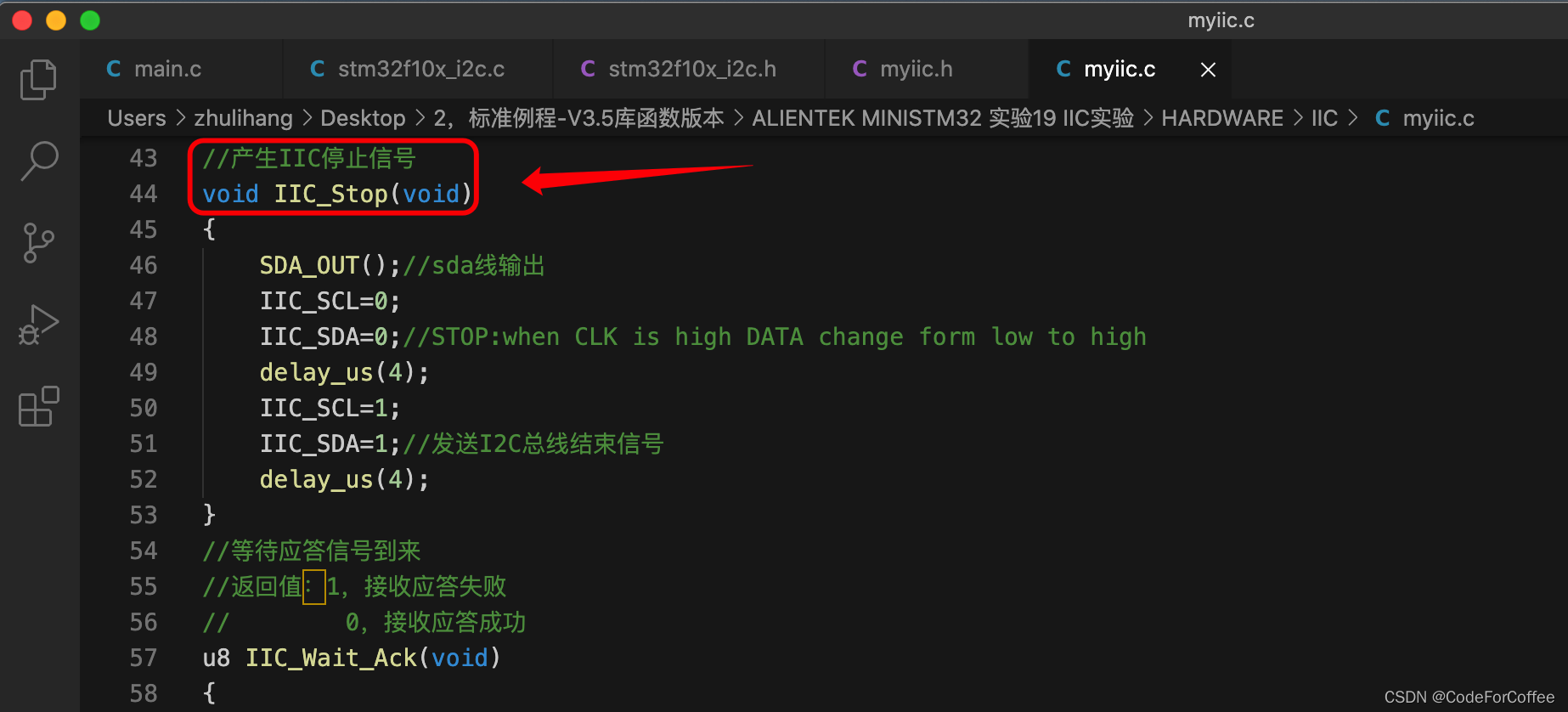 拖接收器成功接收该信号,则拉低SDA,表示ACK