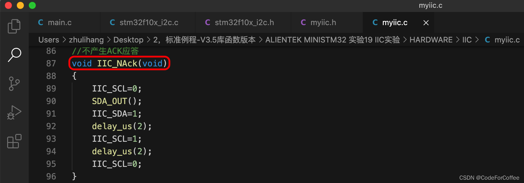 若没有成功接收该信号,则不拉低,SDA仍为高,表示NACK