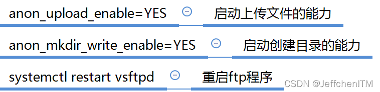 用于设定FTP服务器的功能开启或关闭的文件:# vim /etc/vsftpd/vsftpd.conf