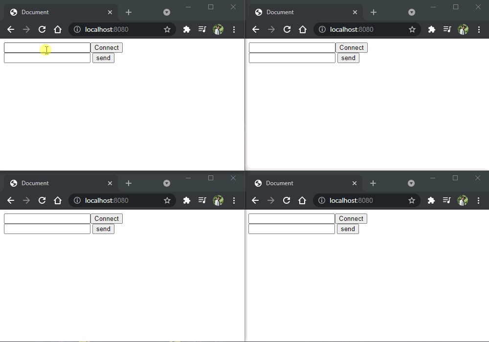 完成服务器部分后,让我们转到客户端。每个现代浏览器都默认支持 WebSocket 协议。这是一个用于发送和接收消息的简单 HTML。