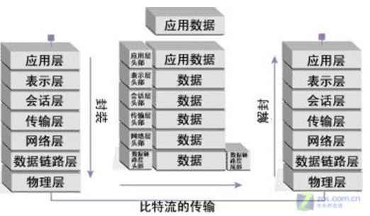 (4)传输层:TCP、UDP、SPX (5)网络层:IP、IPX、ICMP、RIP、OSPF(Open Shortest Path First开放式最短路径优先) (6)数据链路层:SDLC、HDLC、PPP、STP(Spanning Tree Protocol)、帧中继 (7)物理层:EIA/TIA RS-232、EIA/TIA RS-449、V.35、RJ-45