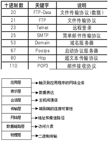 (1)应用层:TELNET、FTP、TFTP、SMTP、SNMP、HTTP、BOOTP、DHCP、DNS(注:DNS使用的传输协议既可为TCP又可为UDP)