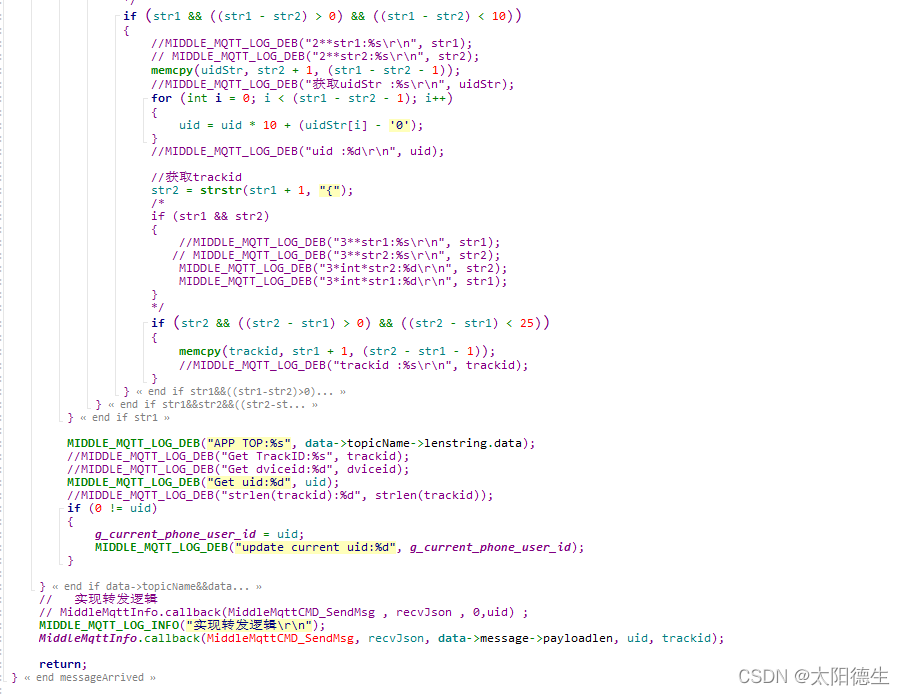 订阅topic的时候注册了消息处理回调函数messageArrived,解析消息,再回送消息;