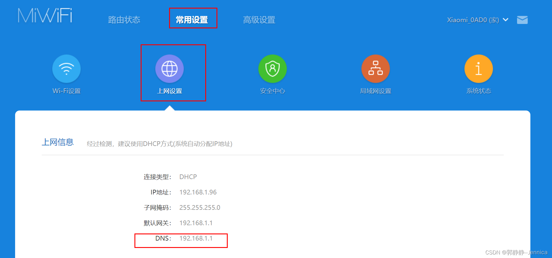 接着点击红框,之后需要输入DNS服务器地址;我的WiFi用的是小米路由器,所以进入miwifi官网,便可以看到该路由器所提供的DNS地址。