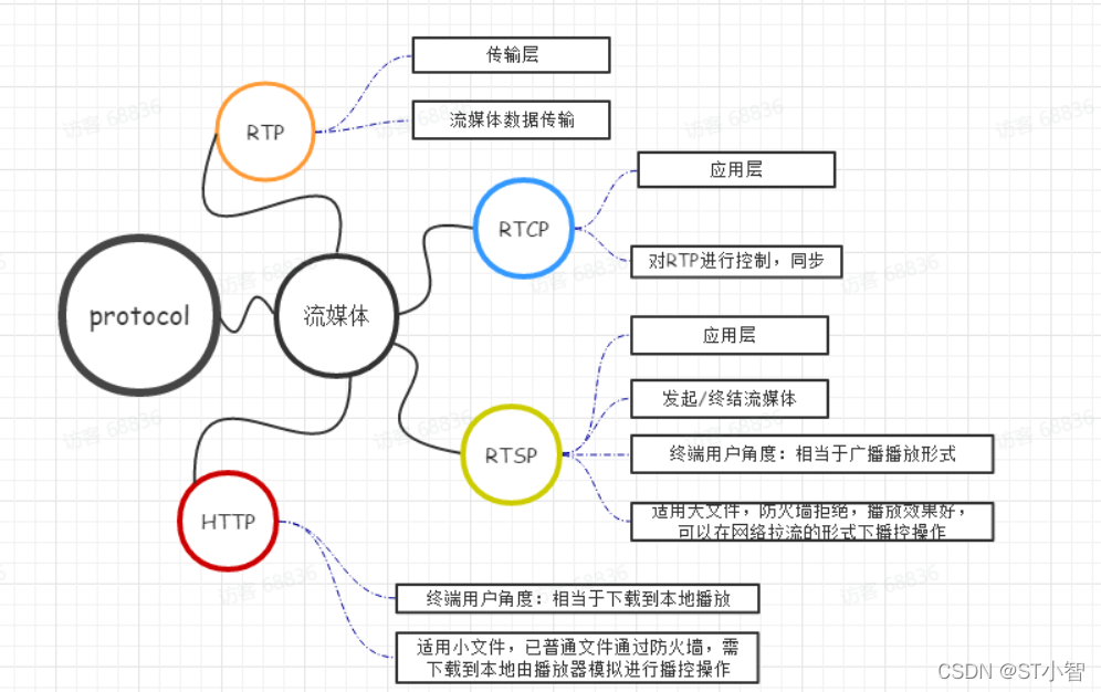 用一句简单的话总结:RTSP发起/终结流媒体、RTP传输流媒体数据 、RTCP对RTP进行控制,同步。