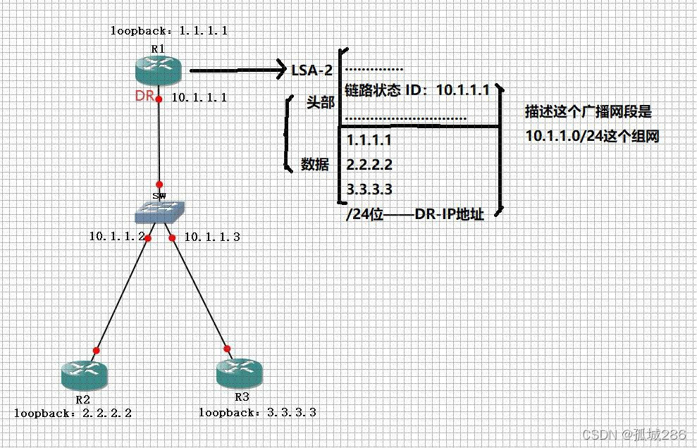 (DR)将会产生网络LSA通告。正如前面讨论的,DR