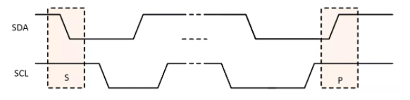 - 起始信号( S ):当SCL是高电平时,SDA从高电平向低电平切换。