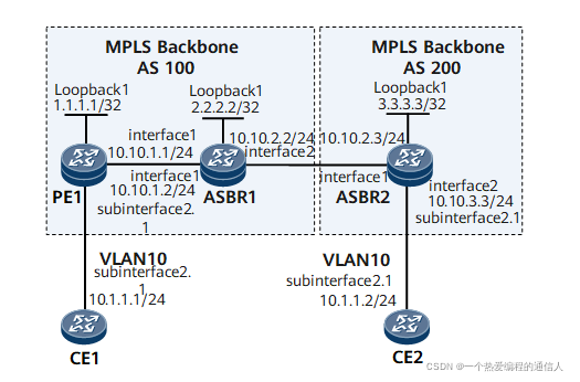 图1配置OptionB方式跨域BGP VPLS(ASBR兼做PE)组网图