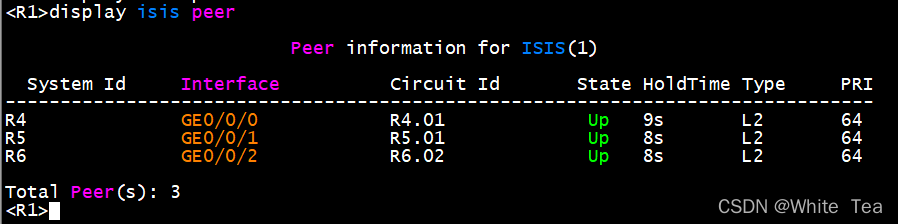 查看R1的验证是否成功,可以看到,全都属于up状态