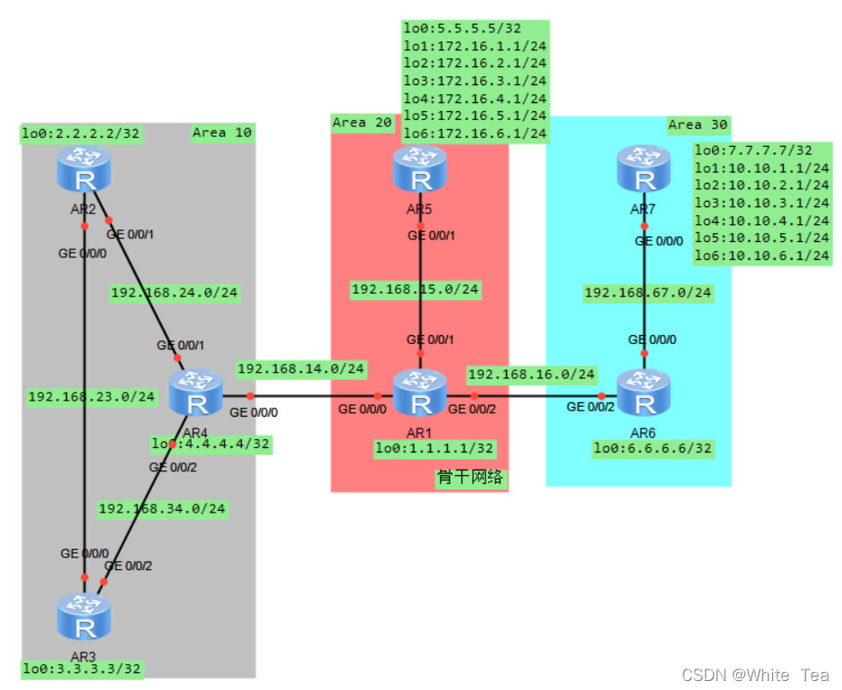 Area 10和Area 30都属于公司分部(Level-1),而Area 20属于公司总部(Level-2)。要求实现公司总部和分部之间的安全互通,且为路由性能考虑,因此要做好路由精简。