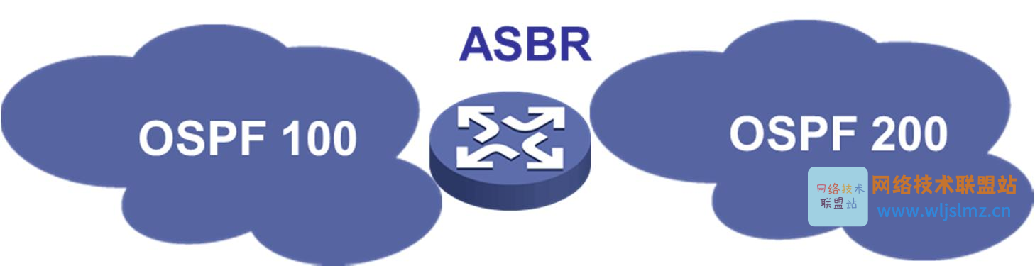 可以在 OSPF200 内产生缺省路由,OSPF200 内用户通过缺省路由访问 OSPF100,也可以在边界路由器上为 OSPF100 创建静态归纳路由,将静态路由导入 OSPF200,照样可以实现 OSPF100、200 之间的互通。