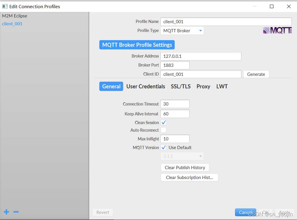 3.1 设置连接参数:
