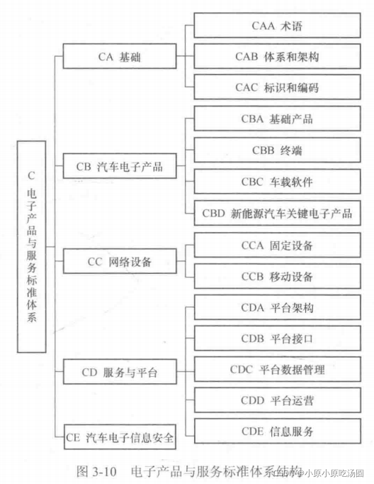 电子产品与服务标准体系主要包括基础、汽车电子产品、网络设备、服务与平台、汽车电子信息安全等标准。