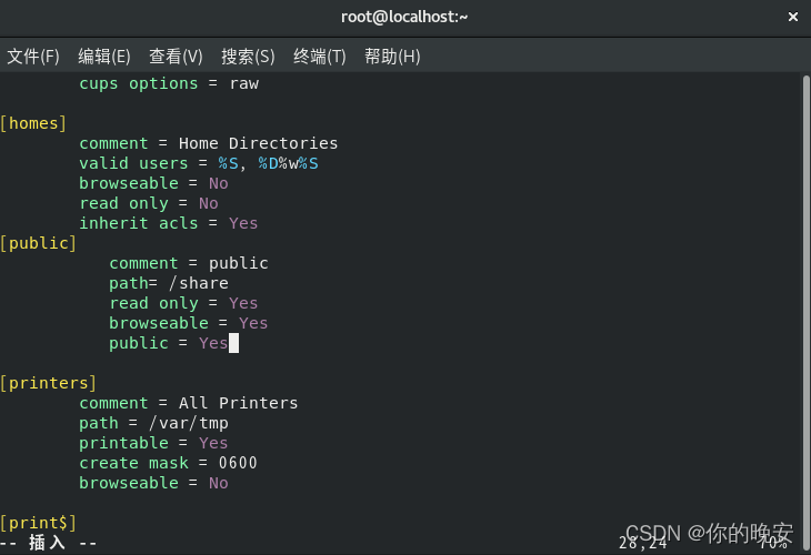 [root@localhost ~]# vim /etc/samba/smb.conf