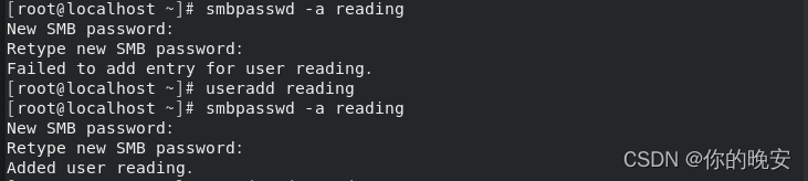[root@localhost ~]# smbpasswd -a sales1 //创建Samba账户