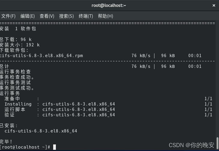 [root@localhost ~]# yum -y install cifs-utils.x86_64