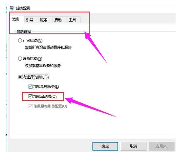 5.然后进入系统配置界面,将“加载启动项”一栏取消勾选。