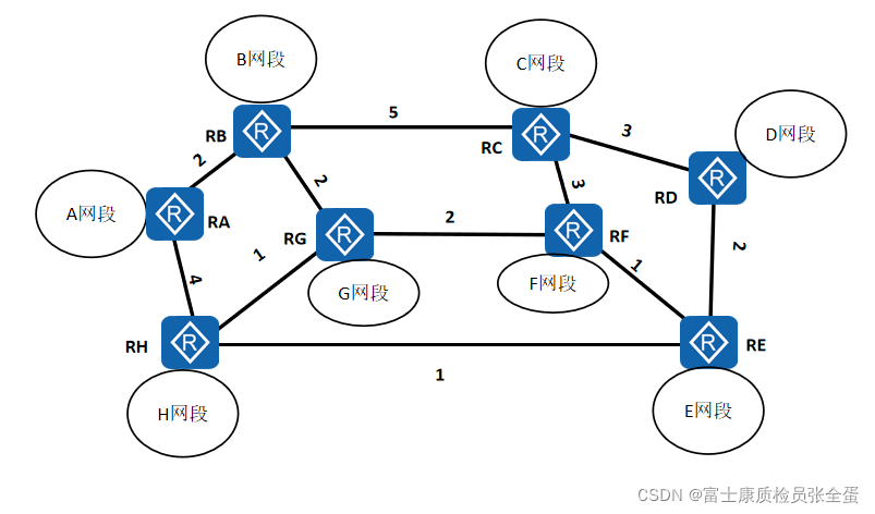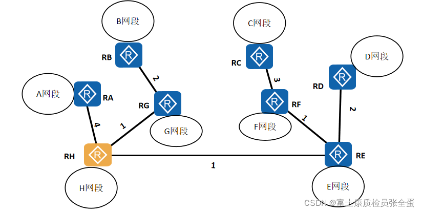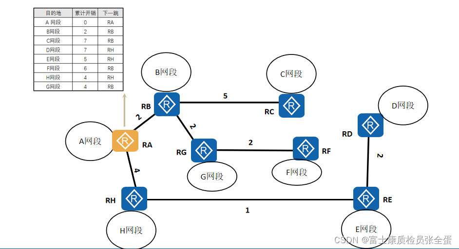 链路之间的开销是用带宽计算出来的。所有路由器都知道到网络当中路由器的拓扑结构,也就是谁连着谁。