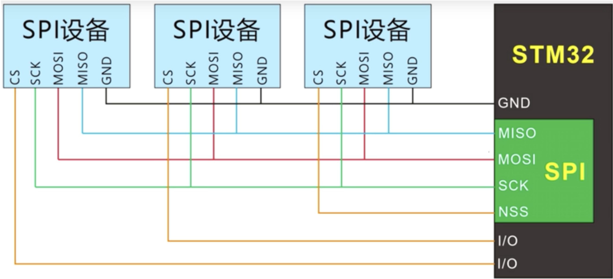 SPI Master就是通过CS来控制,具体跟哪个SPI Slave通讯,控制CS为低电平就代表选中该SPI Slave。