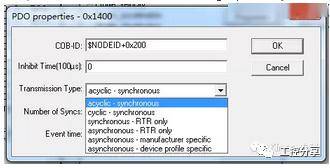 上图,这就是PDO的配置过程,0x1402(接收PDO通讯参数),PDO使用的cob-id,传输类型,Inhibit time,EventTimer。