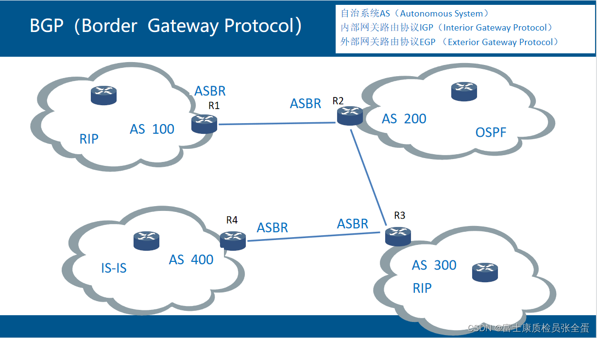 BGP 较新版本是 2006 年 1 月发表的 BGP-4(BGP 第 4 个版本),即 RFC 4271 ~ 4278。 可以将 BGP-4 简写为 BGP。